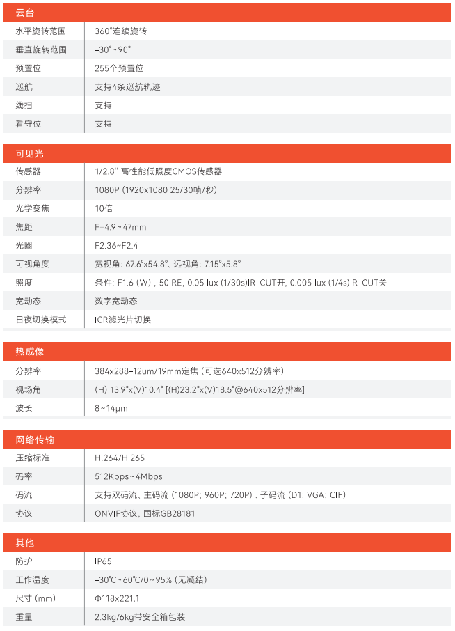 小尺寸輕量化設計,單獨球機重量不超過2.5KG