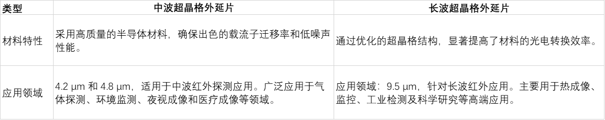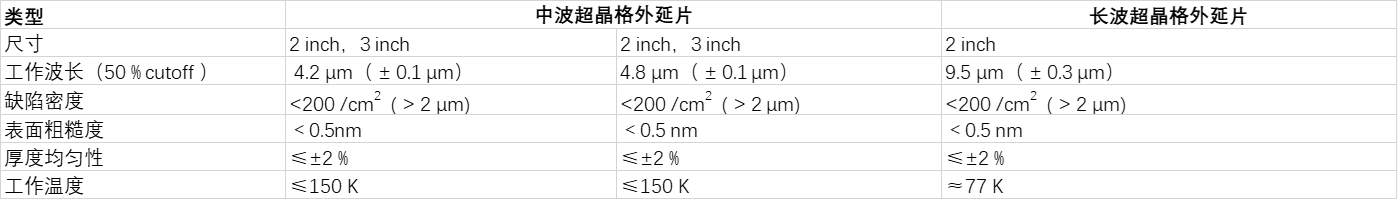 光智科技中波(4.2μm和4.8μm)及長波(9.5μm)超晶格外延片,采用先進(jìn)的分子束外延生長技術(shù),專為紅外探測器和光電器件應(yīng)用設(shè)計。具有優(yōu)越的光學(xué)和電子性能,能夠滿足高靈敏度、高分辨率的探測需求。